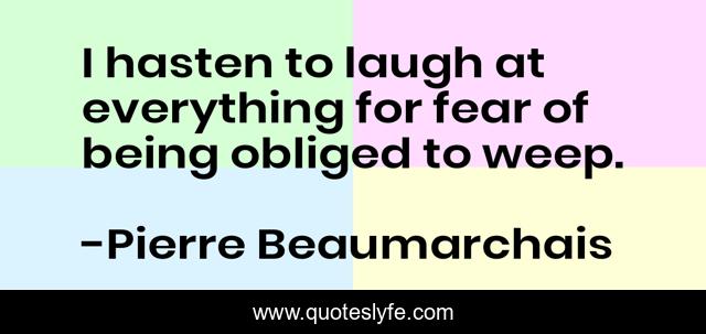 This page presents the quote "I hasten to laugh at everything for fear of being obliged to weep.". Author of this quote is Pierre Beaumarchais. .