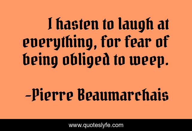 This page presents the quote "I hasten to laugh at everything, for fear of being obliged to weep.". Author of this quote is Pierre Beaumarchais. This quote is about being, everything, laugh,.
