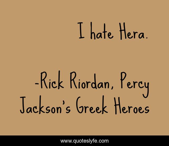 This page presents the quote "I hate Hera.". Author of this quote is Rick Riordan, Percy Jackson's Greek Heroes. This quote is about hera, relatable, percy-jackson,.