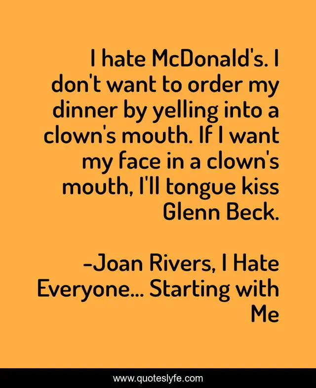 "Joan Rivers, I Hate Everyone... Starting with Me Quotes." Quoteslyfe.com, 2025. Fri. 05 Dec. 2025. <https://www.quoteslyfe.com/quote/I-hate-McDonald-s-I-don-t-197032>.