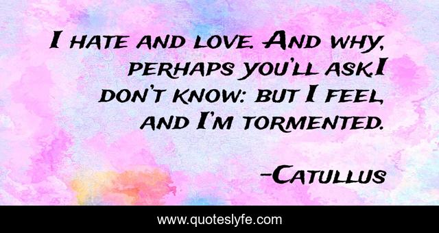 This page presents the quote "I hate and love. And why, perhaps you’ll ask.I don’t know: but I feel, and I’m tormented.". Author of this quote is Catullus. This quote is about poems, love-hate,.
