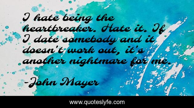 This page presents the quote "I hate being the heartbreaker. Hate it. If I date somebody and it doesn't work out, it's another nightmare for me.". Author of this quote is John Mayer. This quote is about me, work, hate,.