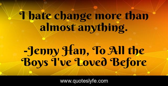 "Jenny Han, To All the Boys I've Loved Before Quotes." Quoteslyfe.com, 2025. Mon. 15 Dec. 2025. <https://www.quoteslyfe.com/quote/I-hate-change-more-than-almost-anything-59509>.