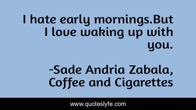 "Sade Andria Zabala, Coffee and Cigarettes Quotes." Quoteslyfe.com, 2025. Sat. 06 Dec. 2025. <https://www.quoteslyfe.com/quote/I-hate-early-mornings-But-I-love-245392>.