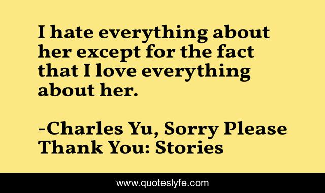 "Charles Yu, Sorry Please Thank You: Stories Quotes." Quoteslyfe.com, 2025. Fri. 05 Dec. 2025. <https://www.quoteslyfe.com/quote/I-hate-everything-about-her-except-for-35132>.