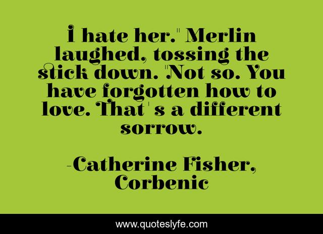 This page presents the quote "I hate her." Merlin laughed, tossing the stick down. "Not so. You have forgotten how to love. That's a different sorrow.". Author of this quote is Catherine Fisher, Corbenic. This quote is about different, merlin, hate, sorrow, forgotten,.