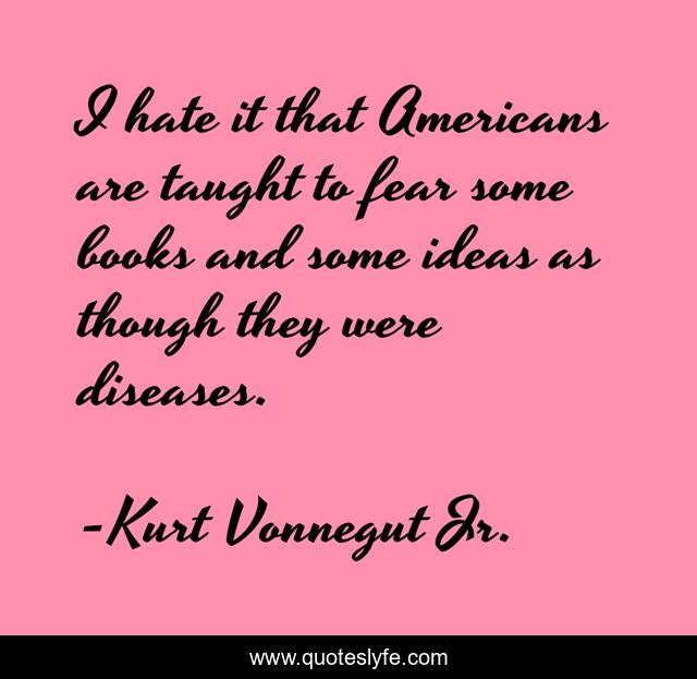 This page presents the quote "I hate it that Americans are taught to fear some books and some ideas as though they were diseases.". Author of this quote is Kurt Vonnegut Jr.. This quote is about intellectual-freedom, ideas, books, censorship, banned-books, freedom-to-read, banned-books-week,.