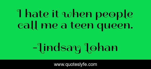 This page presents the quote "I hate it when people call me a teen queen.". Author of this quote is Lindsay Lohan. This quote is about me, queen, hate,.