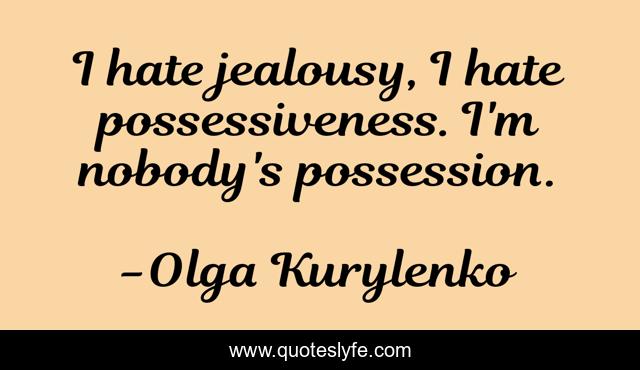 This page presents the quote "I hate jealousy, I hate possessiveness. I'm nobody's possession.". Author of this quote is Olga Kurylenko. This quote is about possession, nobody, hate,.
