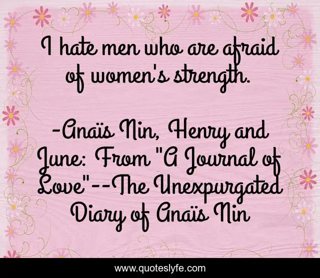 "Anaïs Nin, Henry and June: From "A Journal of Love"--The Unexpurgated Diary of Anaïs Nin Quotes." Quoteslyfe.com, 2025. Fri. 05 Dec. 2025. <https://www.quoteslyfe.com/quote/I-hate-men-who-are-afraid-of-101440>.