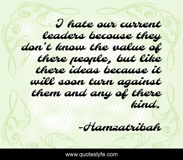 "Hamzatribah Quotes." Quoteslyfe.com, 2025. Sat. 06 Dec. 2025. <https://www.quoteslyfe.com/quote/I-hate-our-current-leaders-becouse-they-100118>.