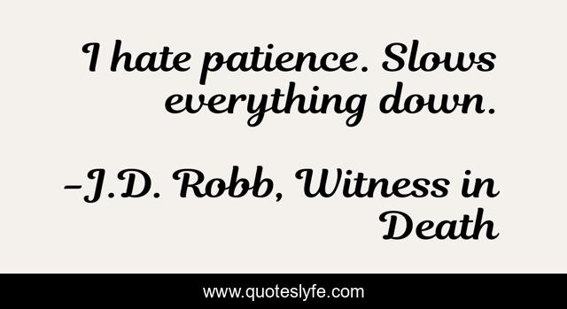"J.D. Robb, Witness in Death Quotes." Quoteslyfe.com, 2025. Fri. 05 Dec. 2025. <https://www.quoteslyfe.com/quote/I-hate-patience-Slows-everything-down-6911>.