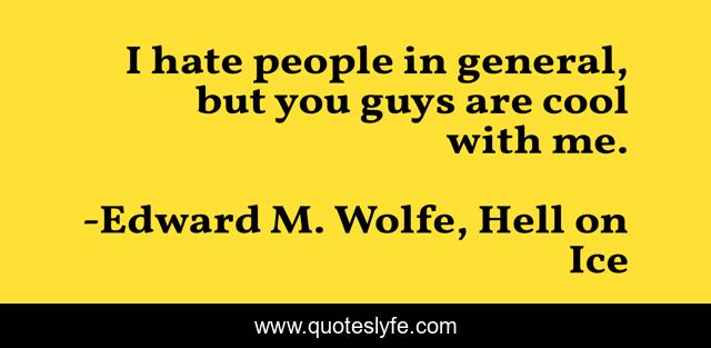 "Edward M. Wolfe, Hell on Ice Quotes." Quoteslyfe.com, 2025. Sat. 06 Dec. 2025. <https://www.quoteslyfe.com/quote/I-hate-people-in-general-but-you-163746>.