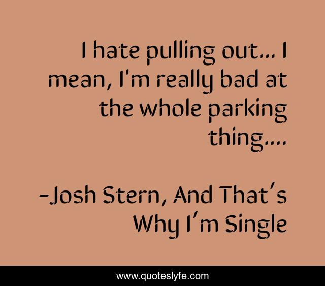 This page presents the quote "I hate pulling out... I mean, I'm really bad at the whole parking thing....". Author of this quote is Josh Stern, And That’s Why I’m Single. This quote is about hate, pulling-out, humor, parking,.
