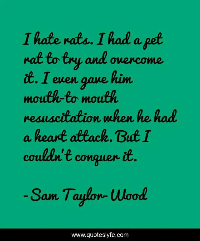 This page presents the quote "I hate rats. I had a pet rat to try and overcome it. I even gave him mouth-to mouth resuscitation when he had a heart attack. But I couldn't conquer it.". Author of this quote is Sam Taylor-Wood. This quote is about heart, conquer, hate,.
