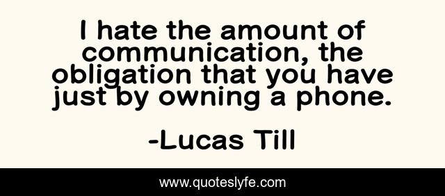 This page presents the quote "I hate the amount of communication, the obligation that you have just by owning a phone.". Author of this quote is Lucas Till. This quote is about phone, hate,.