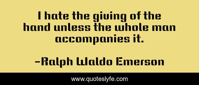 This page presents the quote "I hate the giving of the hand unless the whole man accompanies it.". Author of this quote is Ralph Waldo Emerson. This quote is about giving, goodness,.