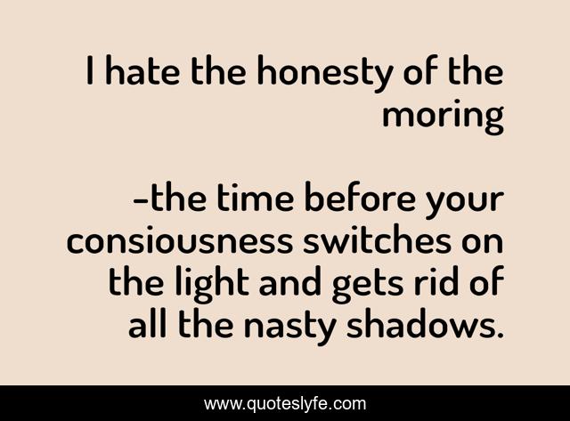 "the time before your consiousness switches on the light and gets rid of all the nasty shadows. Quotes." Quoteslyfe.com, 2025. Fri. 05 Dec. 2025. <https://www.quoteslyfe.com/quote/I-hate-the-honesty-of-the-moring-86910>.