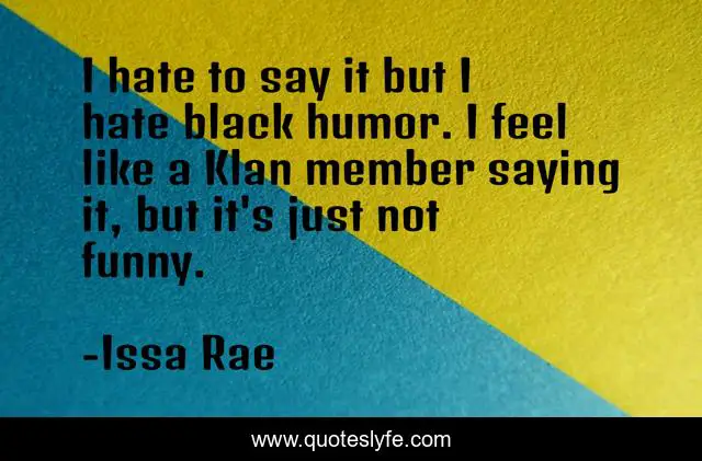 This page presents the quote "I hate to say it but I hate black humor. I feel like a Klan member saying it, but it's just not funny.". Author of this quote is Issa Rae. This quote is about funny, comedy, hate, black,.