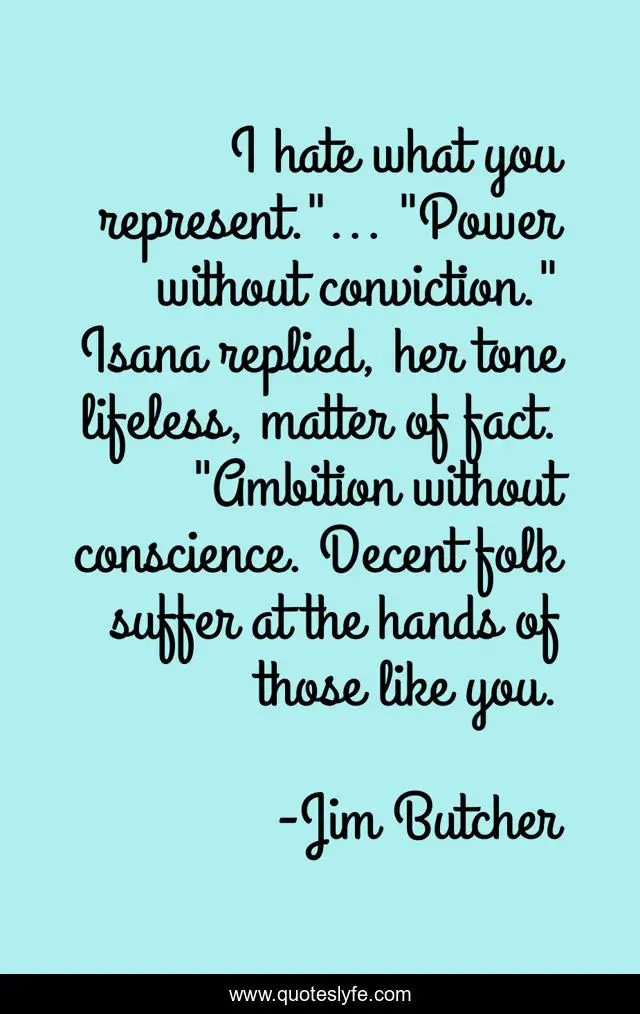 "Jim Butcher Quotes." Quoteslyfe.com, 2025. Mon. 08 Dec. 2025. <https://www.quoteslyfe.com/quote/I-hate-what-you-represent-Power-without-88161>.
