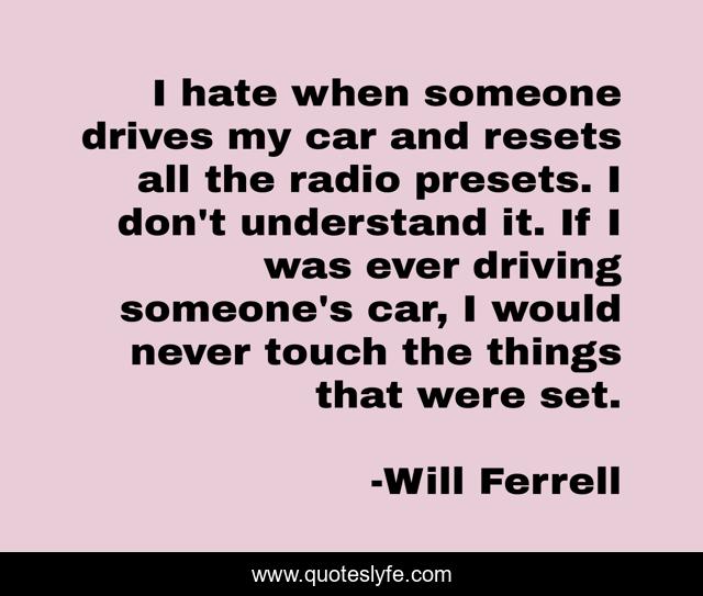 This page presents the quote "I hate when someone drives my car and resets all the radio presets. I don't understand it. If I was ever driving someone's car, I would never touch the things that were set.". Author of this quote is Will Ferrell. This quote is about hate, understand, driving,.