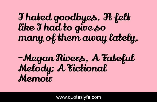 "Megan Rivers, A Fateful Melody: A Fictional Memoir Quotes." Quoteslyfe.com, 2026. Mon. 12 Jan. 2026. <https://www.quoteslyfe.com/quote/I-hated-goodbyes-It-felt-like-I-79333>.