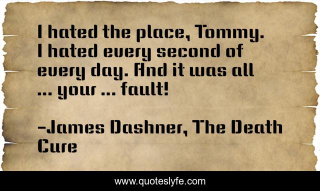"James Dashner, The Death Cure Quotes." Quoteslyfe.com, 2025. Fri. 05 Dec. 2025. <https://www.quoteslyfe.com/quote/I-hated-the-place-Tommy-I-hated-178391>.