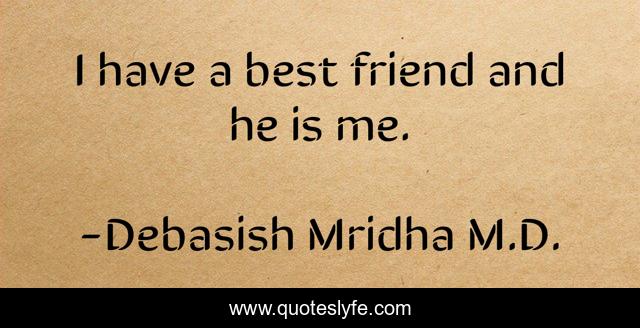 This page presents the quote "I have a best friend and he is me.". Author of this quote is Debasish Mridha M.D.. This quote is about best-friend, philosophy, debasish-mridha, best-friend-is-me, quotes, inspirational, enthusiasm, debasish-mridha-m-d,.