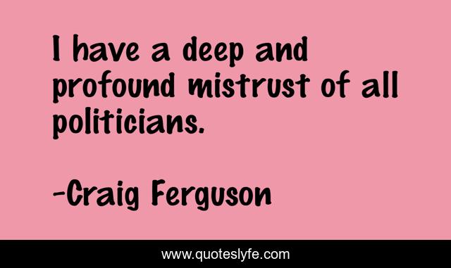 This page presents the quote "I have a deep and profound mistrust of all politicians.". Author of this quote is Craig Ferguson. This quote is about politics, politicians, trust, mistrust,.