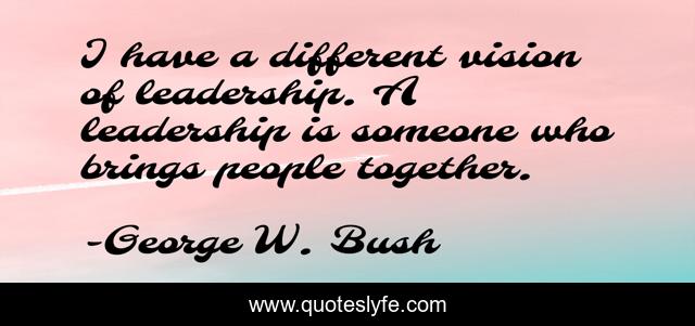This page presents the quote "I have a different vision of leadership. A leadership is someone who brings people together.". Author of this quote is George W. Bush. This quote is about together, vision, people,.