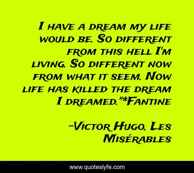 "Victor Hugo, Les Misérables Quotes." Quoteslyfe.com, 2025. Sat. 06 Dec. 2025. <https://www.quoteslyfe.com/quote/I-have-a-dream-my-life-would-249500>.