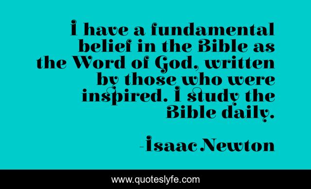 This page presents the quote "I have a fundamental belief in the Bible as the Word of God, written by those who were inspired. I study the Bible daily.". Author of this quote is Isaac Newton. This quote is about bible, belief, daily,.