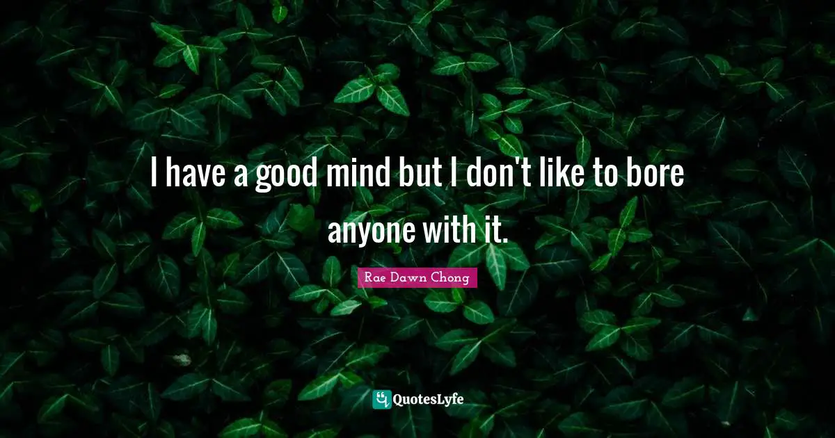This page presents the quote "I have a good mind but I don't like to bore anyone with it.". Author of this quote is Rae Dawn Chong. This quote is about bores, good mind, mind,.