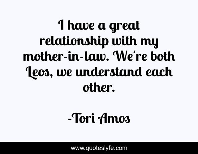 This page presents the quote "I have a great relationship with my mother-in-law. We're both Leos, we understand each other.". Author of this quote is Tori Amos. This quote is about understand, relationship,.