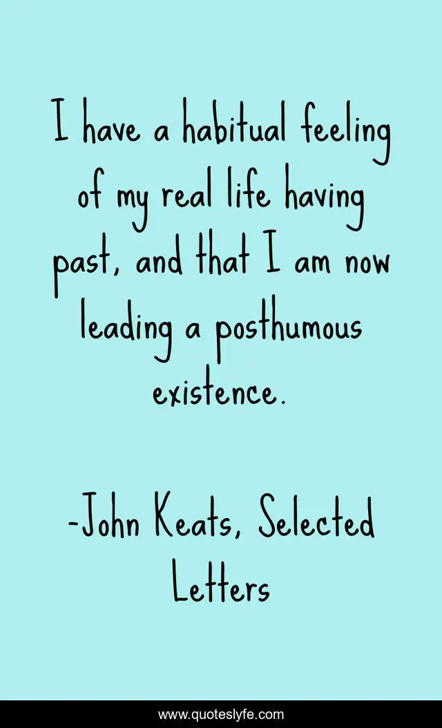 This page presents the quote "I have a habitual feeling of my real life having past, and that I am now leading a posthumous existence.". Author of this quote is John Keats, Selected Letters. .