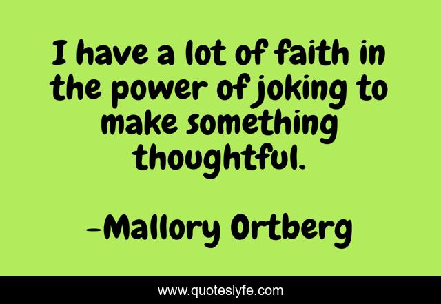 This page presents the quote "I have a lot of faith in the power of joking to make something thoughtful.". Author of this quote is Mallory Ortberg. This quote is about faith, thoughtful, something,.