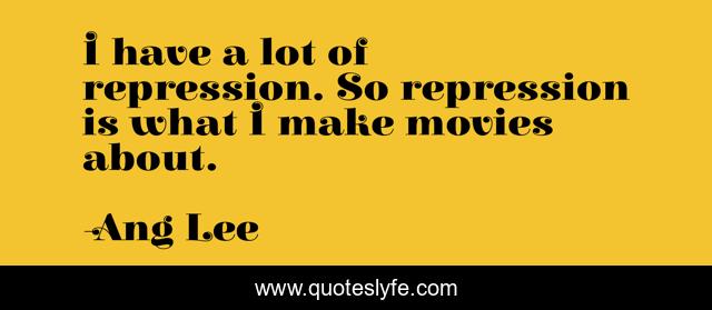 This page presents the quote "I have a lot of repression. So repression is what I make movies about.". Author of this quote is Ang Lee. This quote is about repression, lot,.