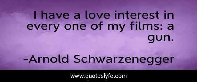 This page presents the quote "I have a love interest in every one of my films: a gun.". Author of this quote is Arnold Schwarzenegger. This quote is about love, interest, affection,.