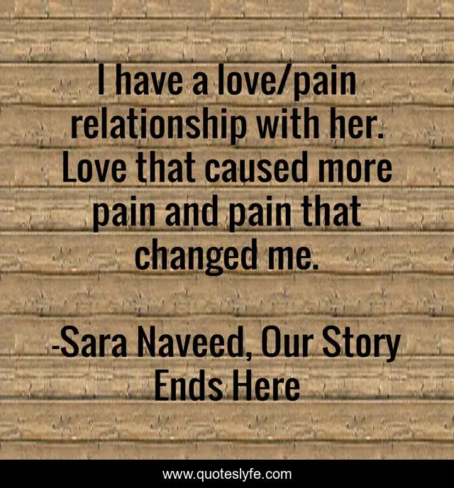 "Sara Naveed, Our Story Ends Here Quotes." Quoteslyfe.com, 2025. Sat. 06 Dec. 2025. <https://www.quoteslyfe.com/quote/I-have-a-love-pain-relationship-with-75808>.