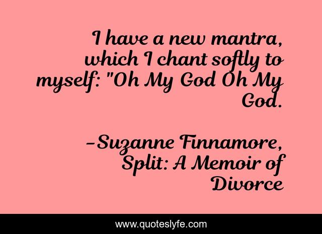 This page presents the quote "I have a new mantra, which I chant softly to myself: "Oh My God Oh My God.". Author of this quote is Suzanne Finnamore, Split: A Memoir of Divorce. This quote is about divorce, seperation, cheating, marriage, infidelity,.