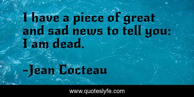 This page presents the quote "I have a piece of great and sad news to tell you: I am dead.". Author of this quote is Jean Cocteau. .
