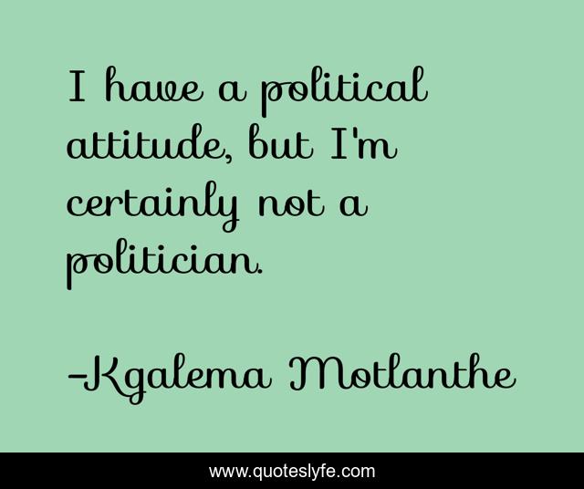 This page presents the quote "I have a political attitude, but I'm certainly not a politician.". Author of this quote is Kgalema Motlanthe. This quote is about political, politician,.