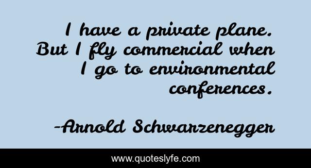 This page presents the quote "I have a private plane. But I fly commercial when I go to environmental conferences.". Author of this quote is Arnold Schwarzenegger. This quote is about fly, go, commercial,.
