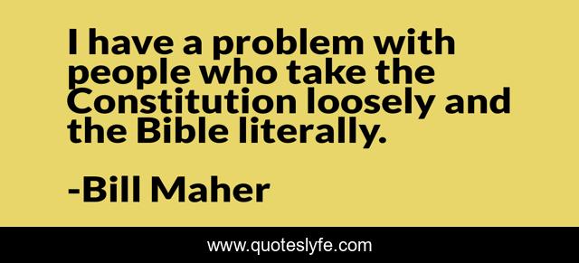 This page presents the quote "I have a problem with people who take the Constitution loosely and the Bible literally.". Author of this quote is Bill Maher. This quote is about bible, constitution, christianity, religion, bill-of-rights, politics,.
