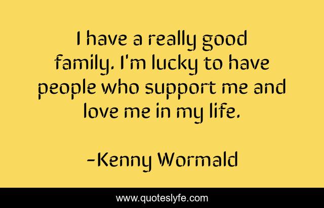 This page presents the quote "I have a really good family. I'm lucky to have people who support me and love me in my life.". Author of this quote is Kenny Wormald. This quote is about life, good, love, affection,.