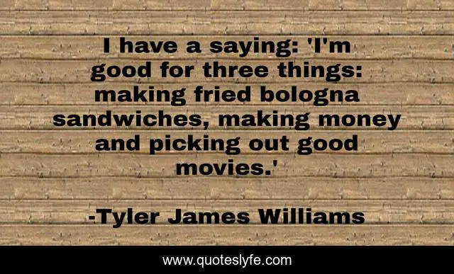 This page presents the quote "I have a saying: 'I'm good for three things: making fried bologna sandwiches, making money and picking out good movies.'". Author of this quote is Tyler James Williams. This quote is about money, good, making money,.