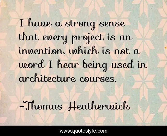 This page presents the quote "I have a strong sense that every project is an invention, which is not a word I hear being used in architecture courses.". Author of this quote is Thomas Heatherwick. This quote is about project, strong, sense,.