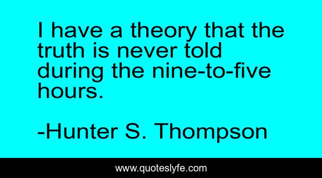This page presents the quote "I have a theory that the truth is never told during the nine-to-five hours.". Author of this quote is Hunter S. Thompson. This quote is about journalist, truth,.