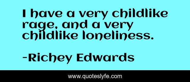 This page presents the quote "I have a very childlike rage, and a very childlike loneliness.". Author of this quote is Richey Edwards. This quote is about loneliness, childlike, rage,.