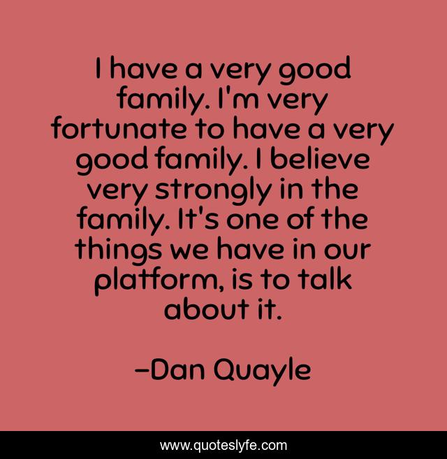 This page presents the quote "I have a very good family. I'm very fortunate to have a very good family. I believe very strongly in the family. It's one of the things we have in our platform, is to talk about it.". Author of this quote is Dan Quayle. This quote is about i believe, good, believe,.